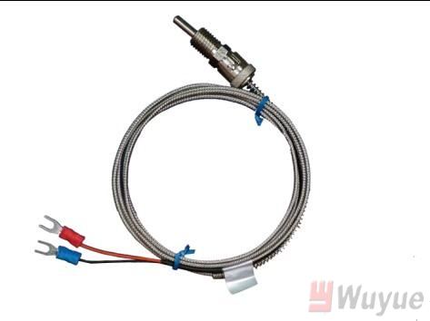 WRET-01型壓簧式熱電偶的結構如圖所示,由保護管,安裝螺栓.鎖緊卡套,彈簧及熱電偶導線等組成。